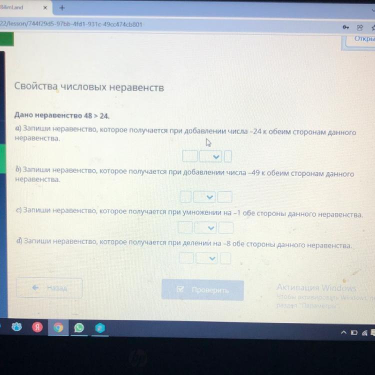 а) Запиши неравенство, которое получается при добавлении числа -24 к обеим сторонам данного