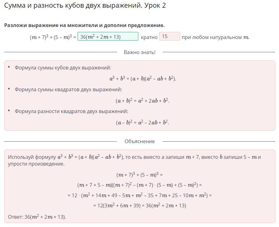 Разложи выражение на множители и дополни предложение. (m+ 7 + (5 - m )3= ........кратно ..........