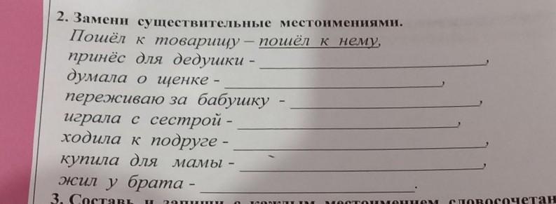Ответ:принес для него, думала о нем, переживаю за нее, играла с ней, ходила к ней, купила для нее, жил у него