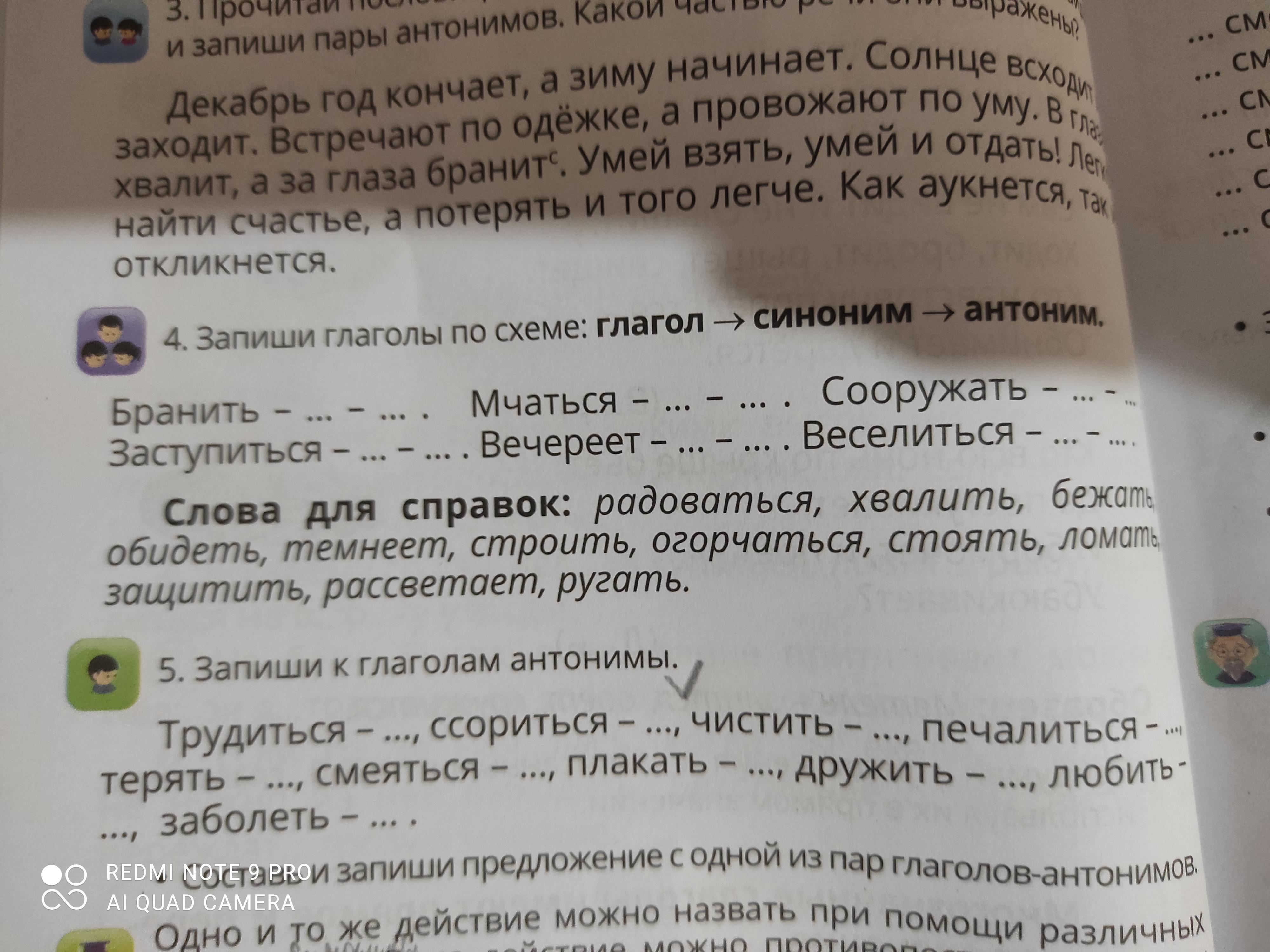 •Составь и запиши предложение с одной из пра глаголов-антонимов.