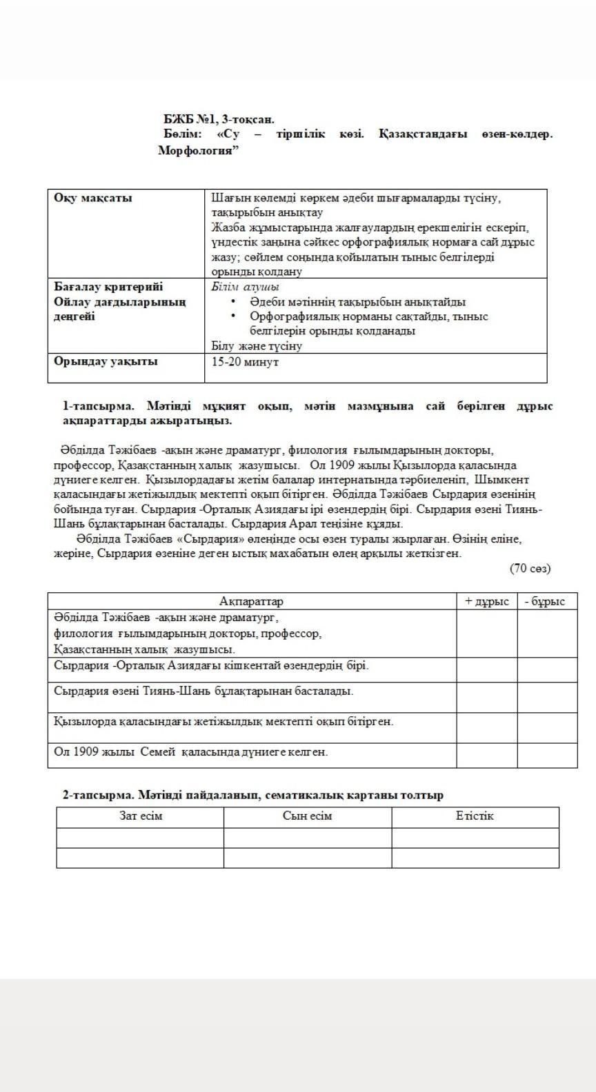 Зат есім - заттың атын білдіретін сөз табы. Сын есім - заттың сапасын, мөлшерін, түсін, иісін, дәмін, (ну в общем қандай екенін) білдіреді. Етістік - іс-қимыл, әрекетті білдіреді.
