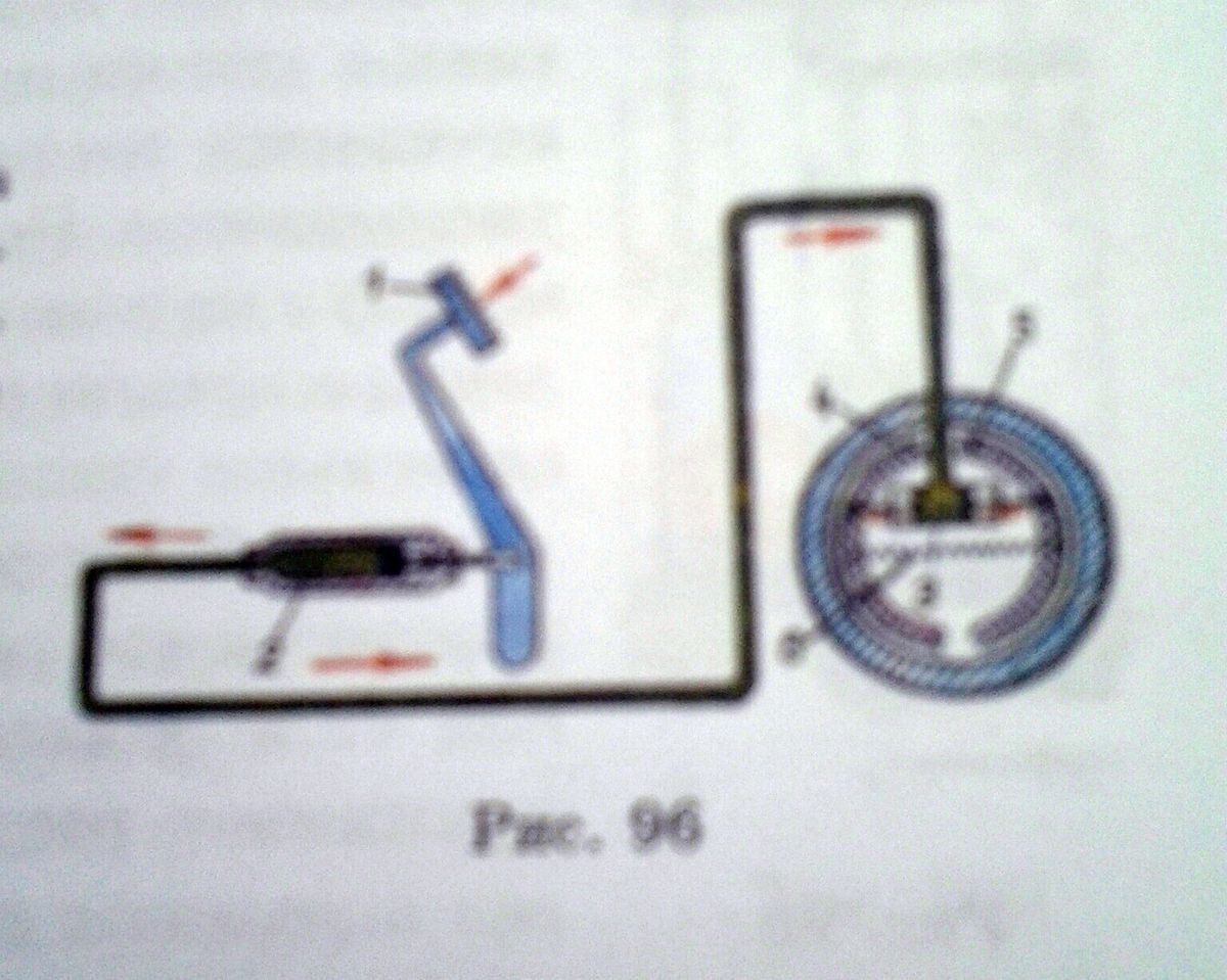 Изображена схема автомобильного гидравлического тормоза. Цилиндр и трубки заполнены жидкостью. Объясните по этой схеме как работает тормоз.
