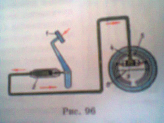 Допустим ты нажимаешь на тормоз, здвигаешь цилиндр, который перемещает жидкость и из-за давления разжимаются поршни, которые сжимают тормозные колодки.