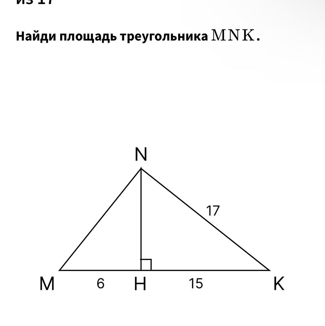 Ответ:NH^2=17^2-15^2=289-225=64
