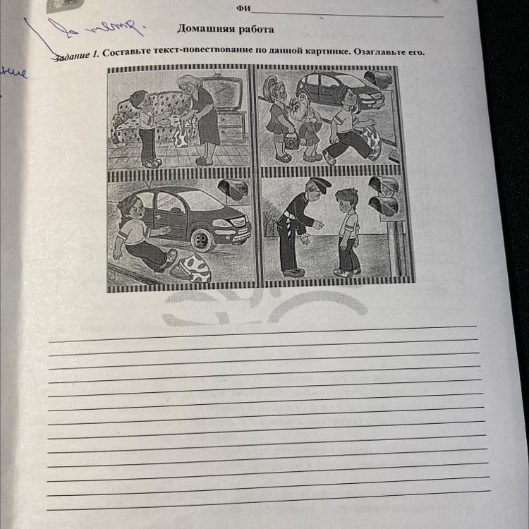 Надя дала своему сыночку Саше схлдиьь в магазин за продуктами и дала ему свою новую сумку, которую ей подарил папа Саши. Когда Саша переходил через дорогу, он не обратил внимание на то, что впереди едет машина. В последствии чего, он упал на дорогу, и порвал мамину сумку. это увидел участковый. он поругал Сашу и рассказал ему, как нужно вести себя на дороге.