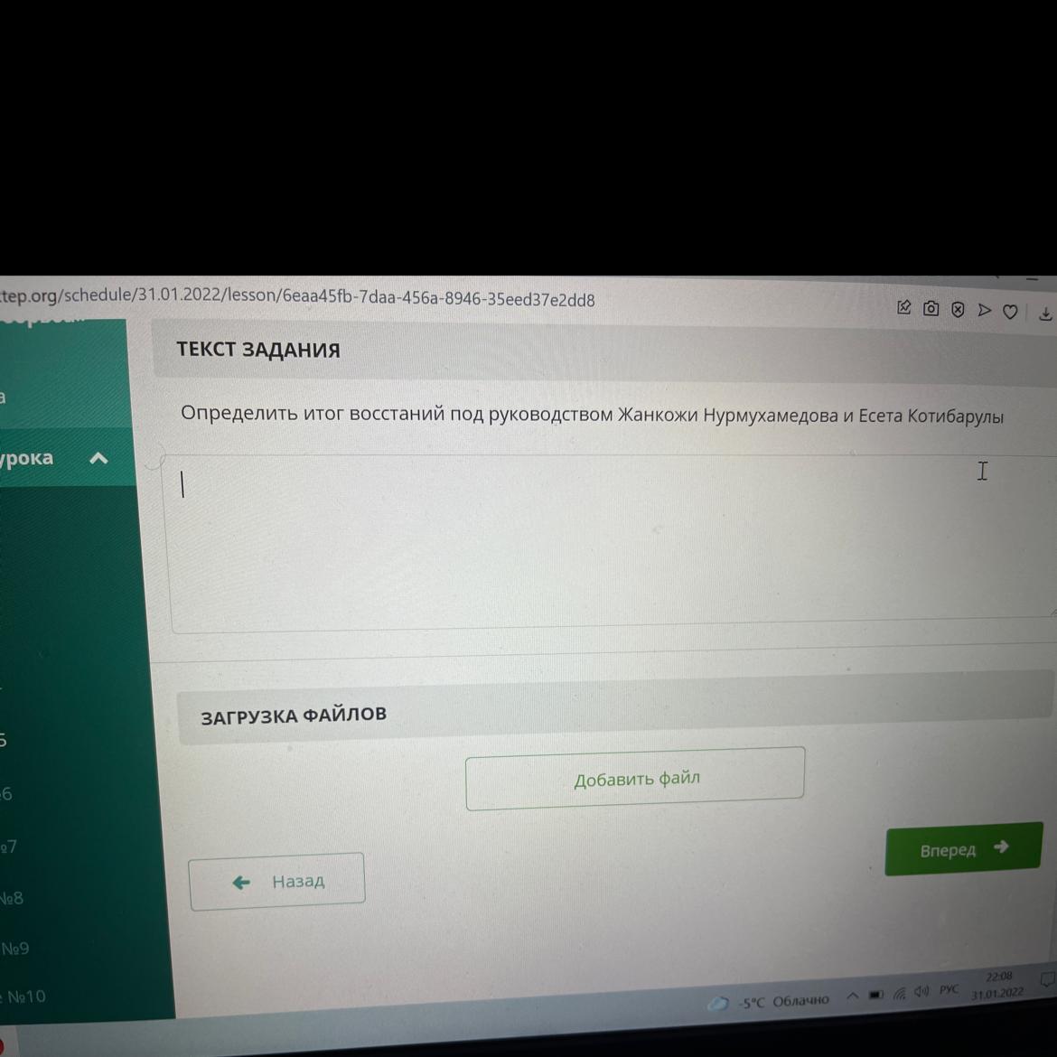 Последствие восстания: 1. Его отряды потерпели окончательное поражение 9 января 1857 года в сражении с карательным отрядом генерал-майора Фитингофа в урочище Арыкбалык. 2. Жанкожа был вынужден искать поддержку у бухарского хана. Причина восстания под руководством Есета Котибарова: Усиление социального и национального гнета царской администрации.