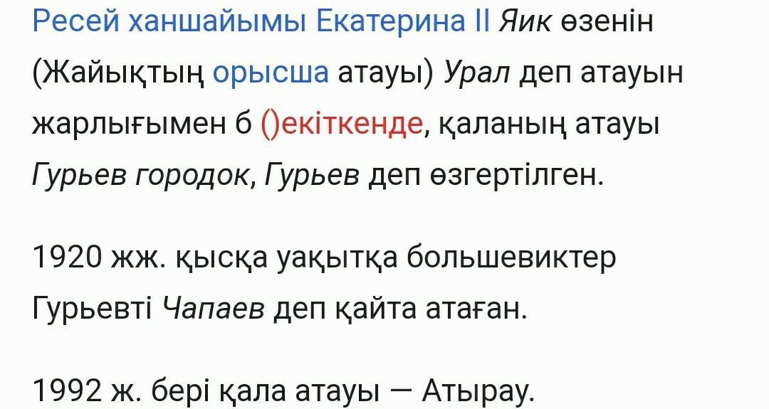 1) 1991 жылы қала тұрғындарының тілегіне орай Гурьев қаласы - Атырау деп аталды. 2) Мұнда украинның ұлы ақыны Т.Г. Шевченко айдауда болды. 1932 ж. Шевченконың мемориалдық мұражайы ашылды. 1928 ж. Форт-Шевченкоға қала мәртебесі берілді. 3) 1961-1964 ж.ж. аралығында Ақтау поселкесі, Ақтау қаласы деп аталды. XIX ғасырдың ортасында Қазақстанға жер аударылған украин ақыны Тарас Шевченконың құрметіне 1964-1991 жылдары Шевченко қаласы деп аталды.