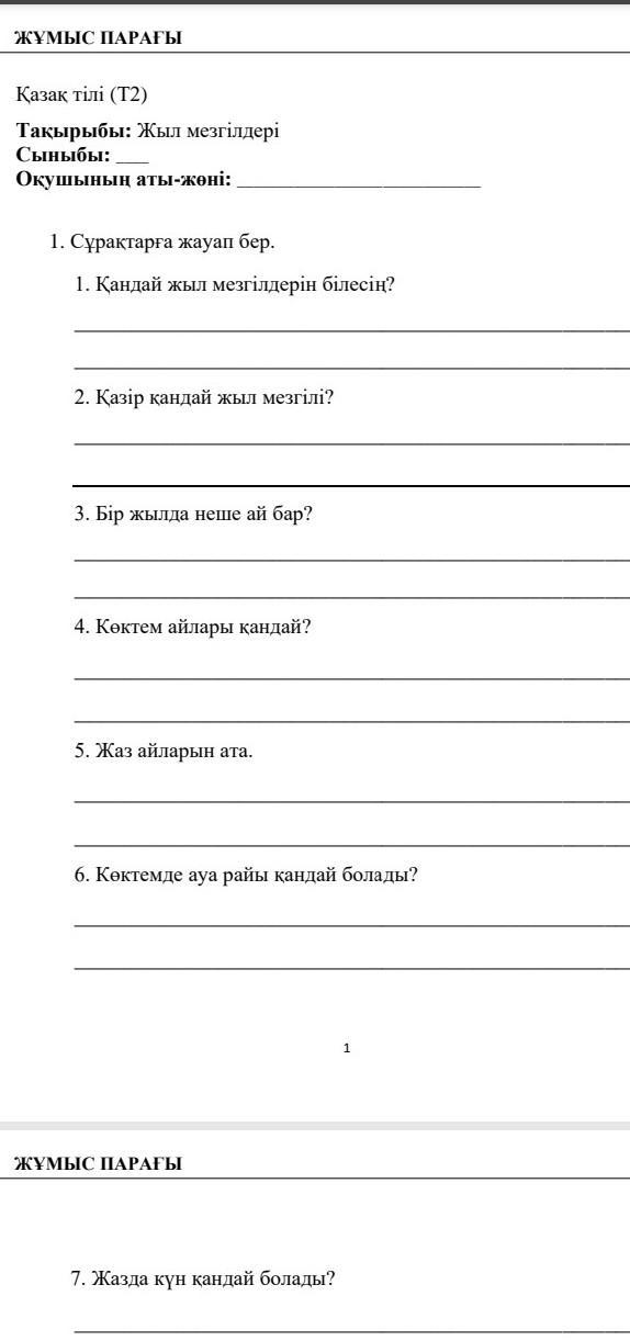 Ответ:1)қыс, көктем, жаз, күзкүз