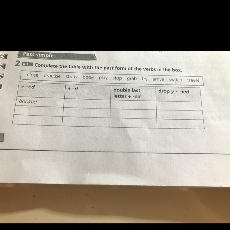Closed,practised,studied,played,stopped,grabbed,tried,arrived,watched,travelled