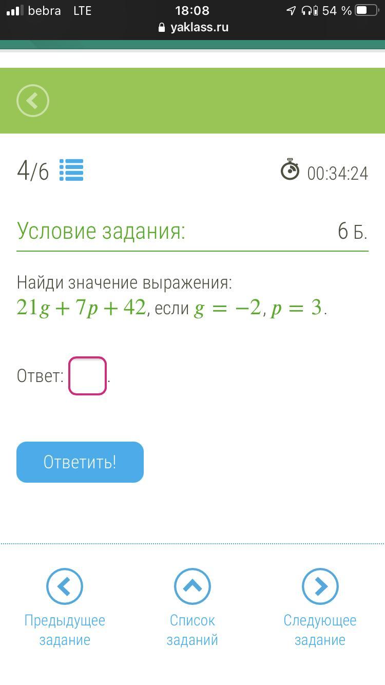 21g + 7p +42 = 21×(-2)+7×3+42 = -42+21+42 (зачёркиваем -42 и 42 , так как противоположны , взаимно уничтожаются ) = 21