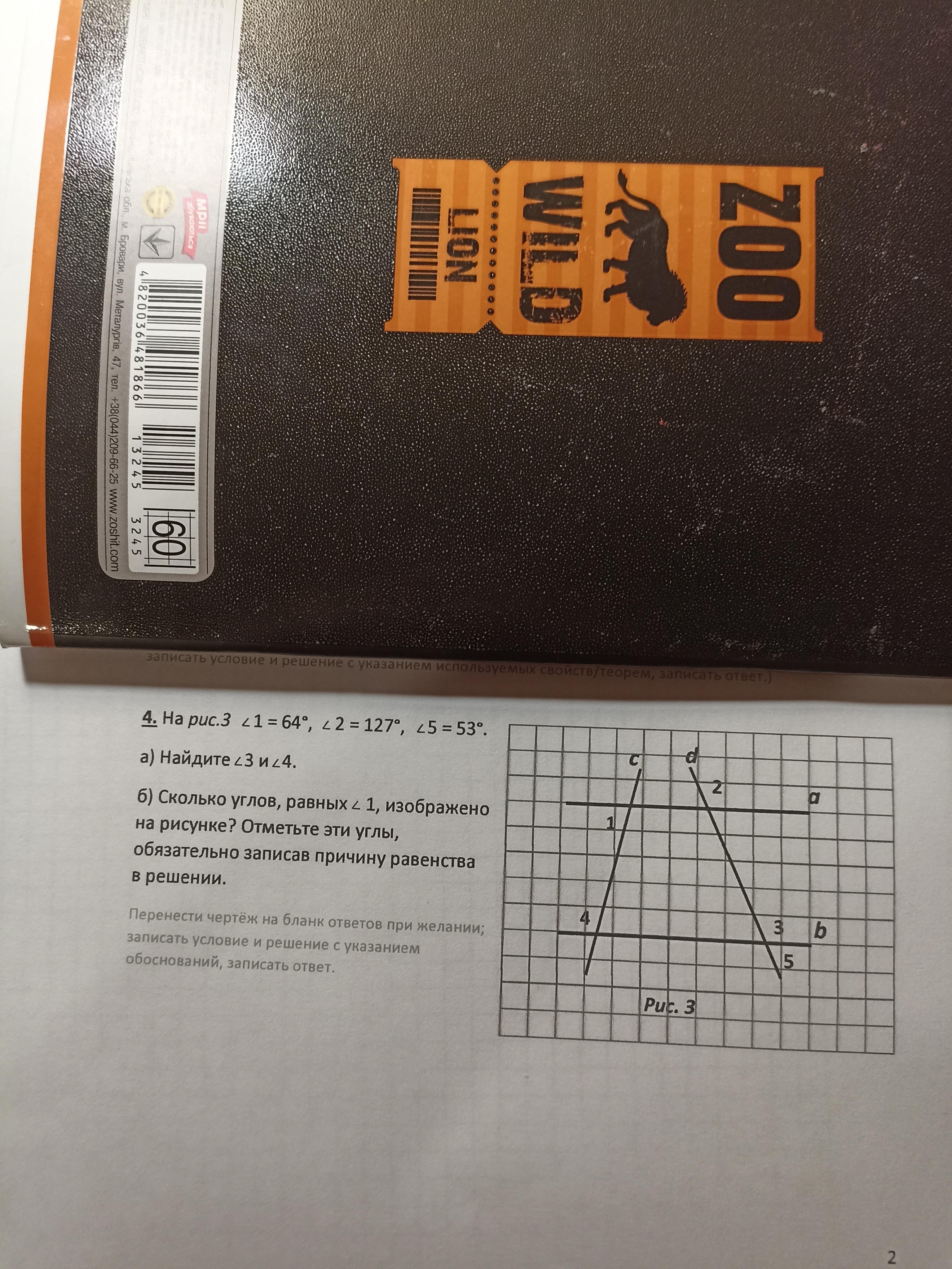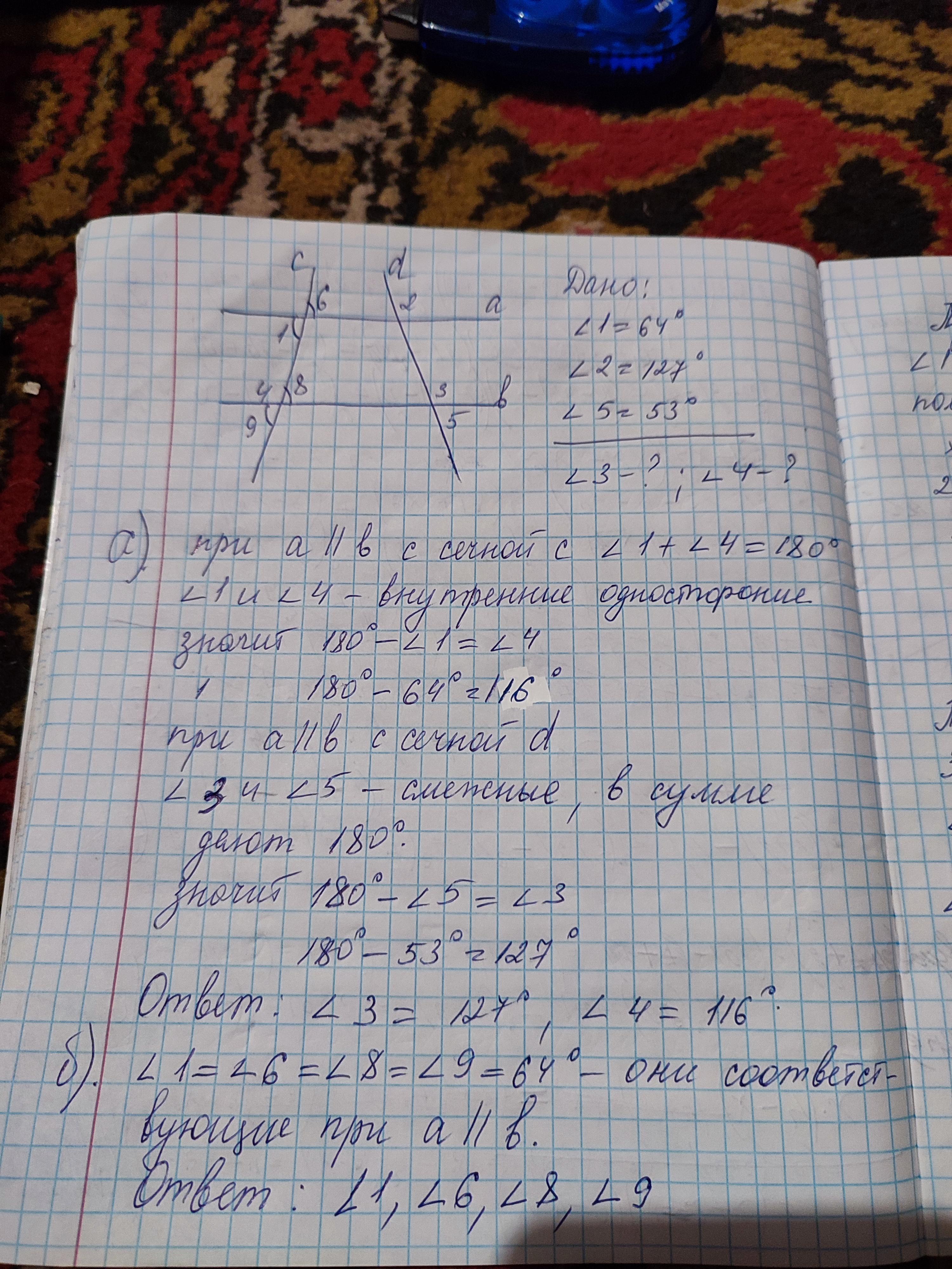 угол 3 равен 127, угол 4 равен 116