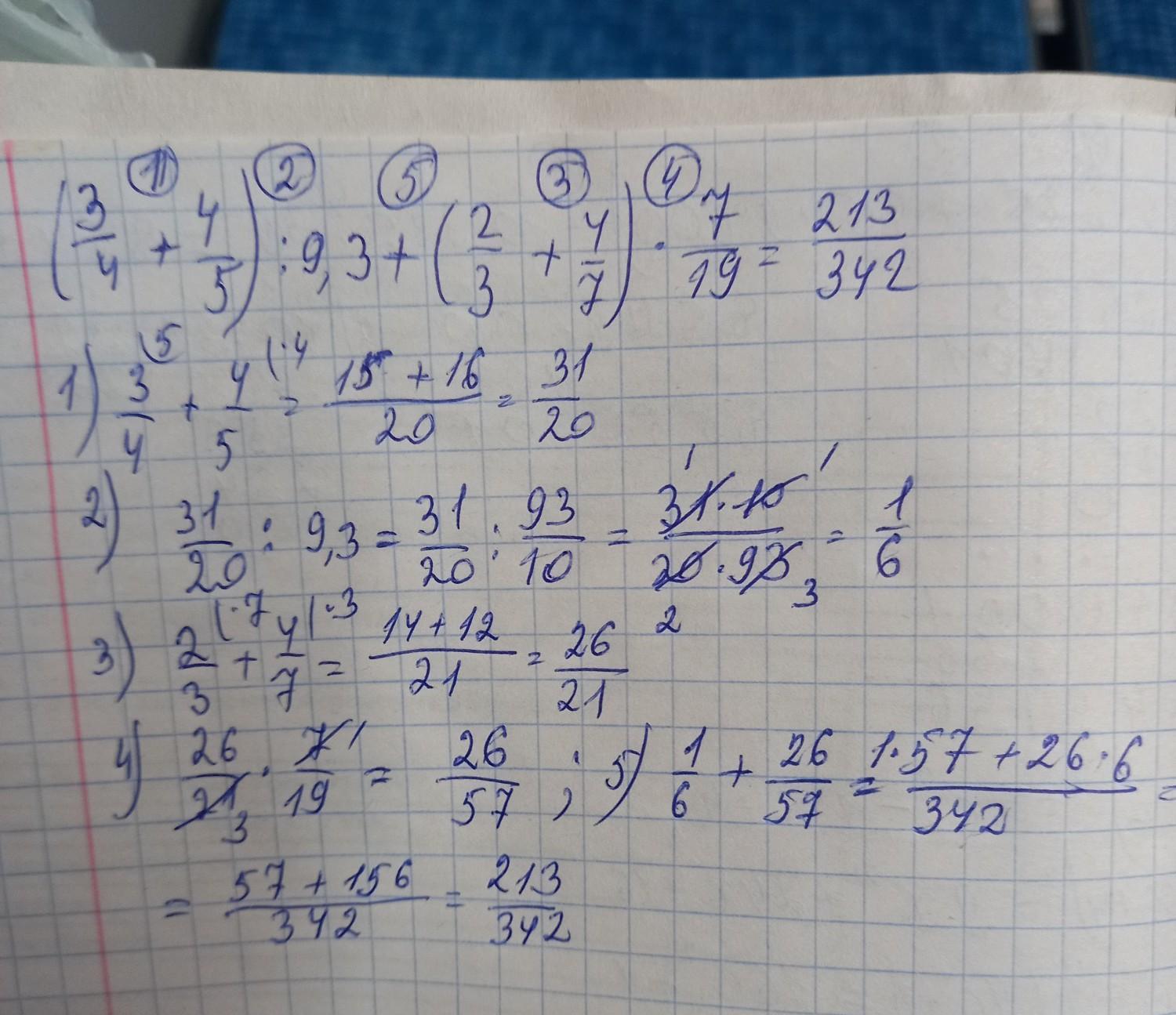 (3/4+4/5):9,3+(2/3+4/7)•7/19=? Вот эта черта / это дробная черта!!!даю