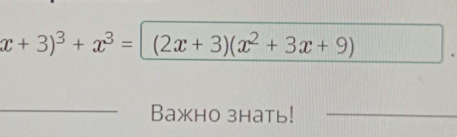 Сумма и разность кубов двух выражений. Урок 2 Представь в виде произведения выражение: (x + 3)3 + x3