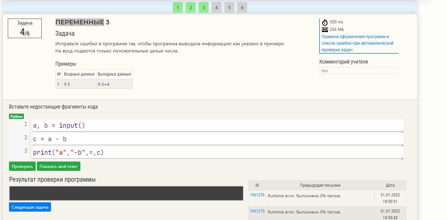 print (a, "- ", b, "=", c)