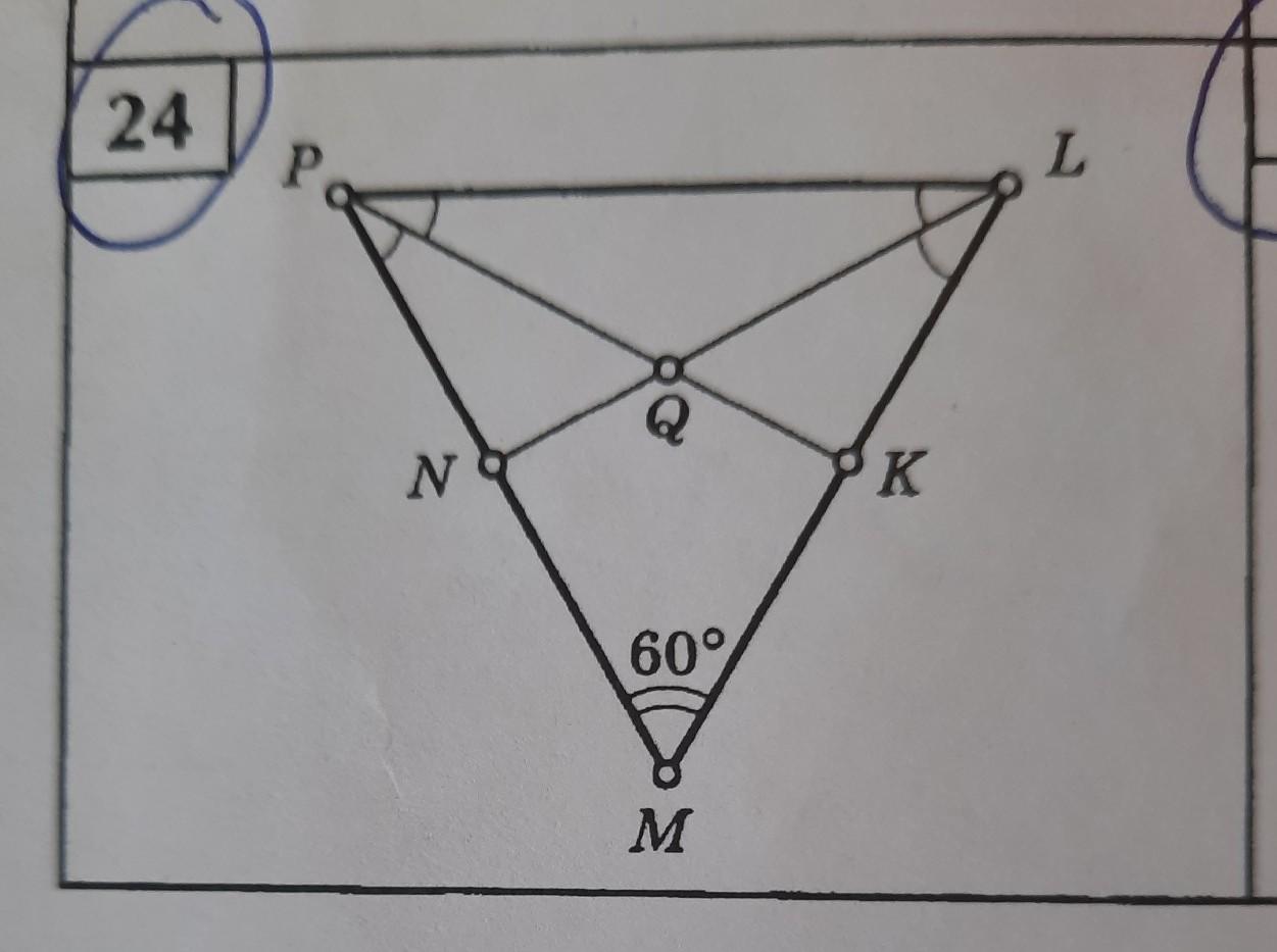 и LN тоже следовательно угол Р и угол L она делит пополам по чертежу видно что это равные углы следовательно тругольник равносторонний