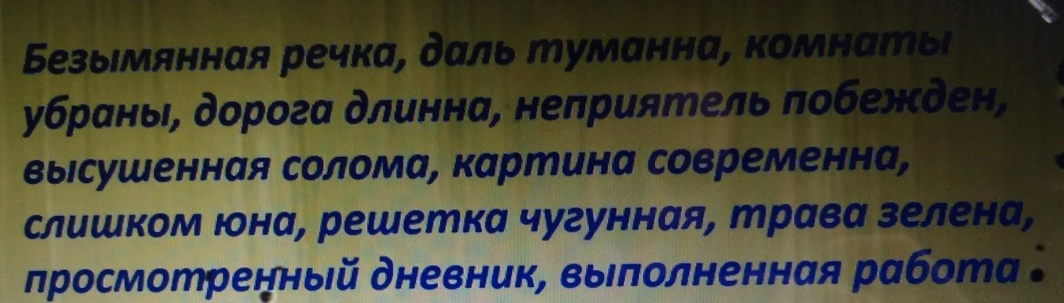 Комнаты убраны,неприятель побеждён,высушенная солома,просмотренный дневник,выполненная работа.