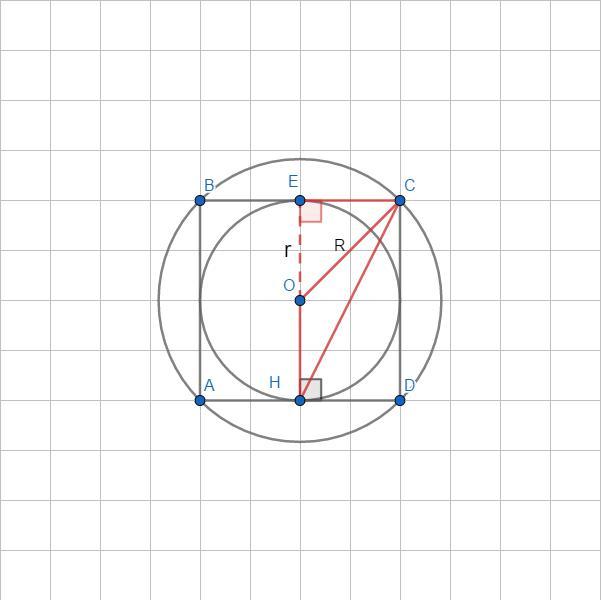 Около квадрата ABCD описана окружность с центром О. Окружность, вписанная в этот квадрат, касается стороны AD в точке Н.