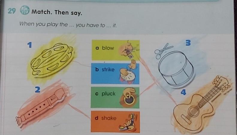 When you play the 4) guitar you have to c) pluck it.
