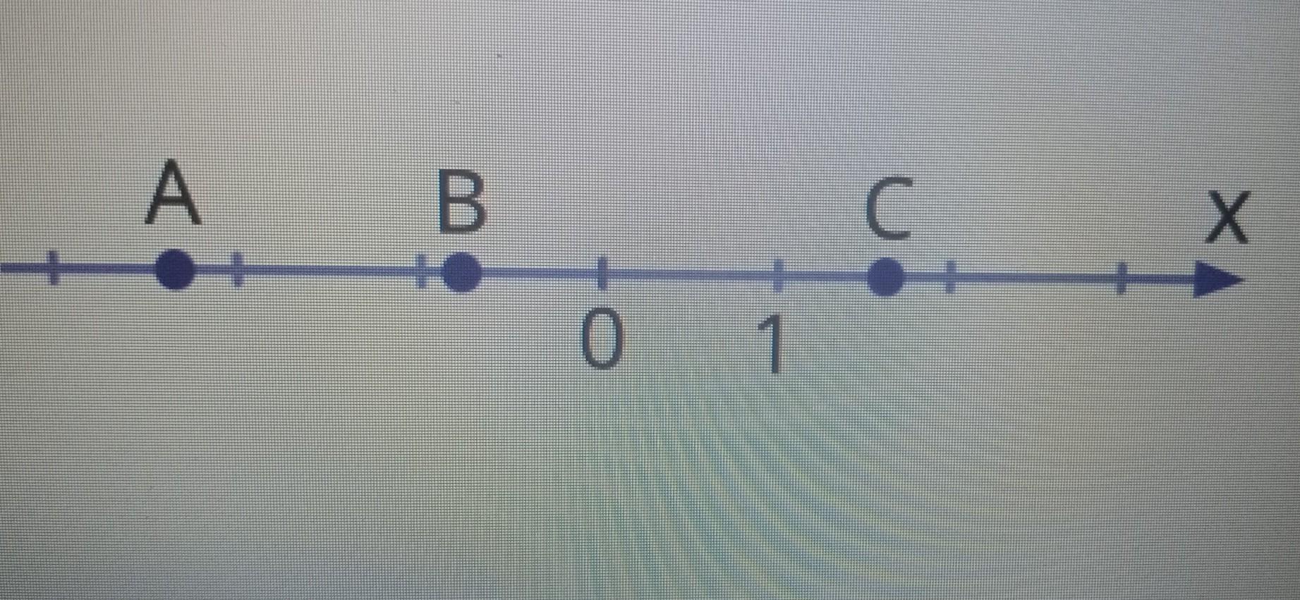 На координатной прямой отмечены точки A, B и C. Выбери и запиши наиболее подходящие координаты для каждой точки из списка: 1) 2,5 2)-0,914 3)8/5 4) 4/9 5)-2, 13