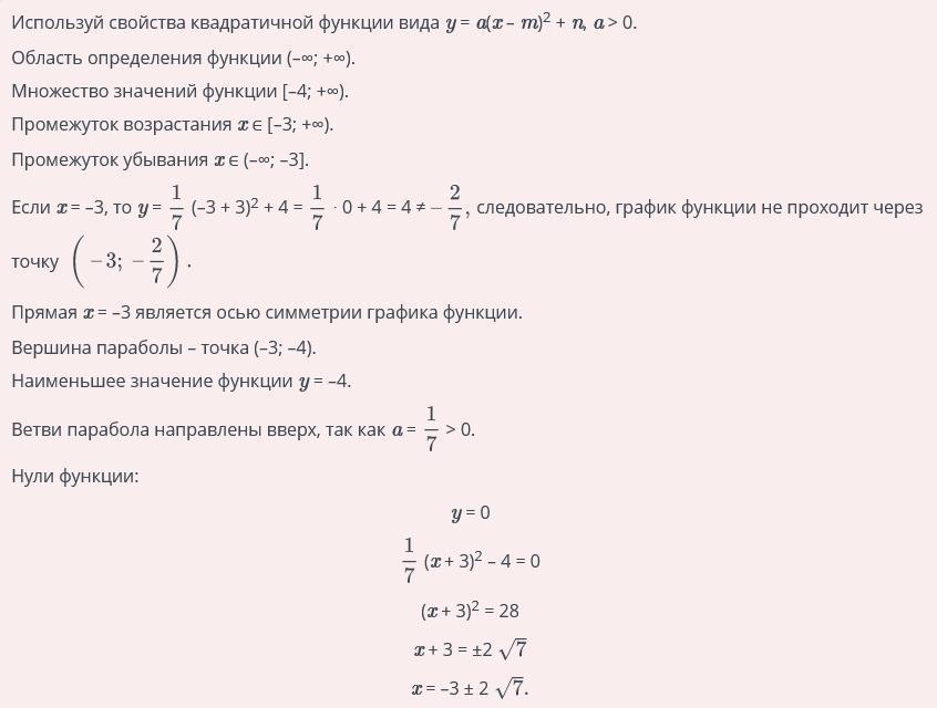 выбери верные утверждения для функции 1/7(x+3)^2-4