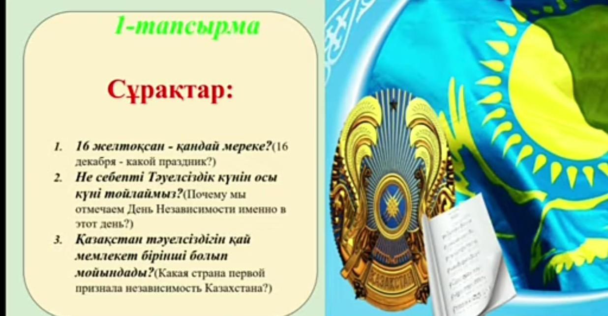 1. 16 желтоқсан-Қазақстан Республикасының Тәуелсіздік күні.