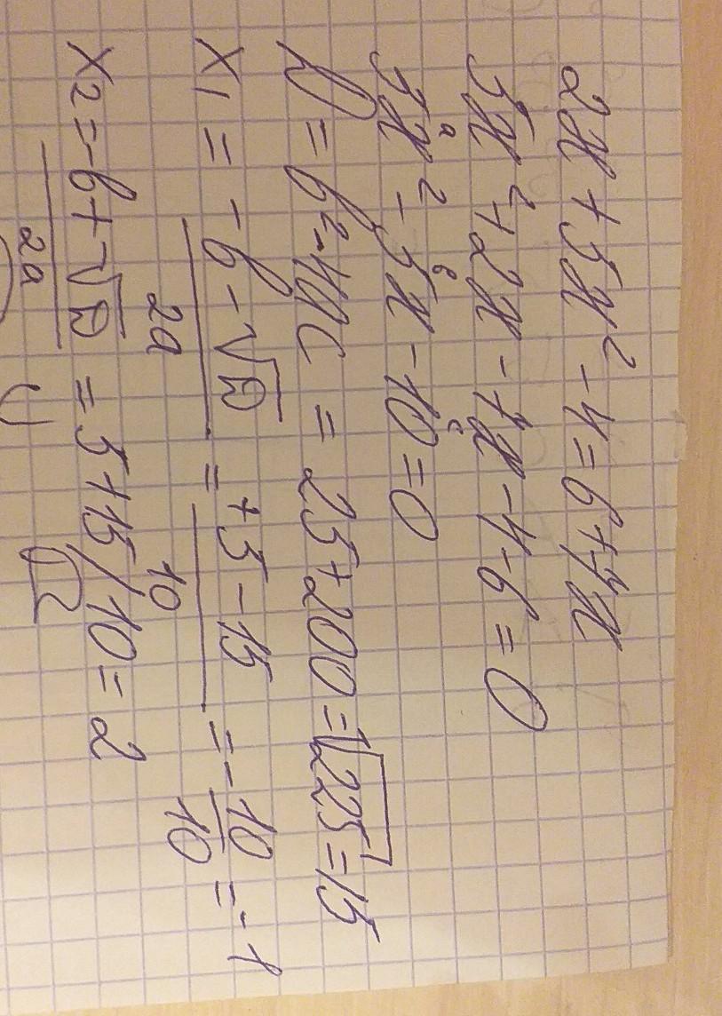 2х+5х²-4=6+7х
