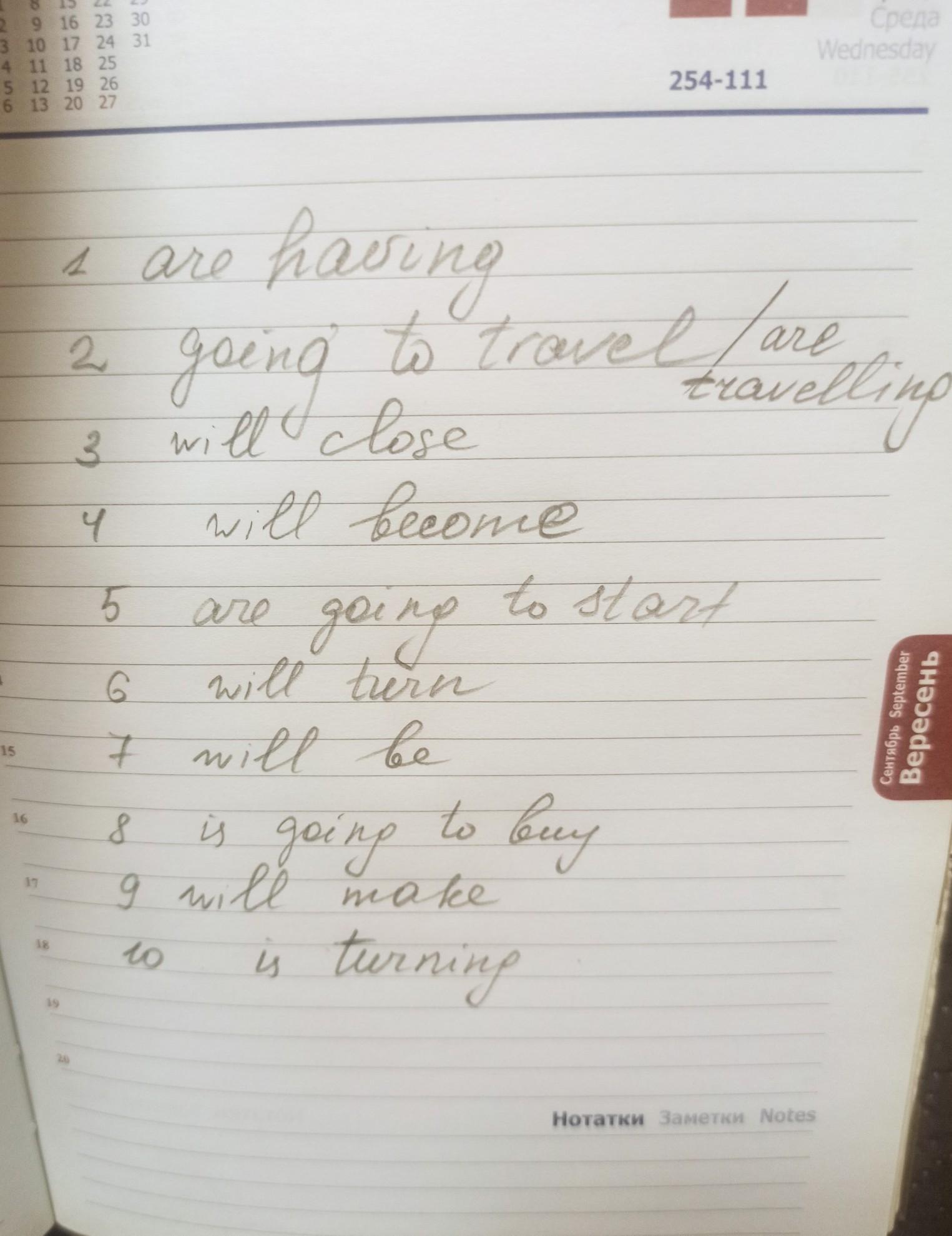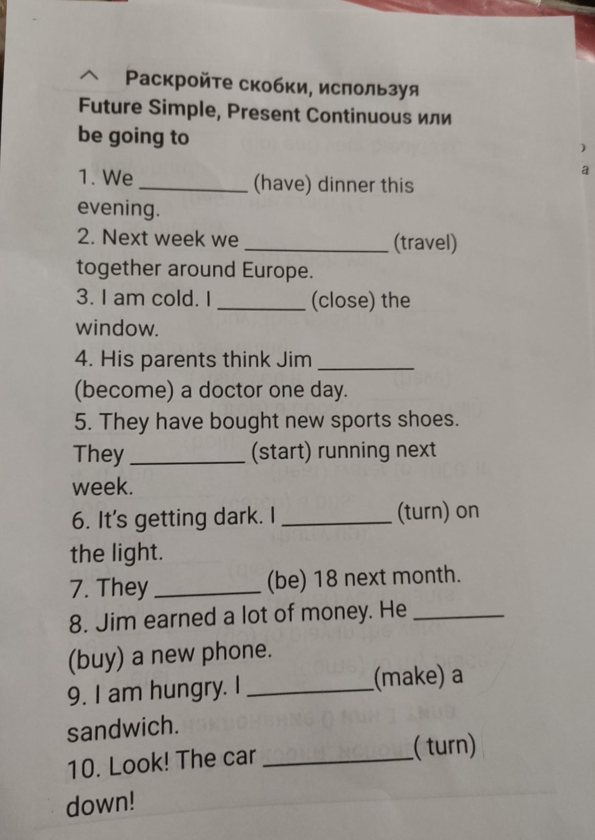 там где поставить глаголы во Future simle, present continuous или be ging to