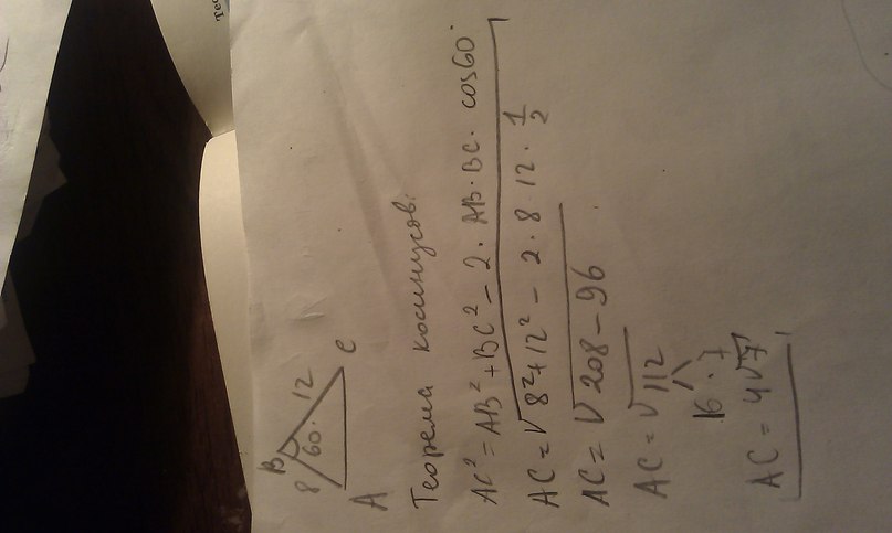 В треугольнике ABC уго = 8, BC = 12. Найдите AC