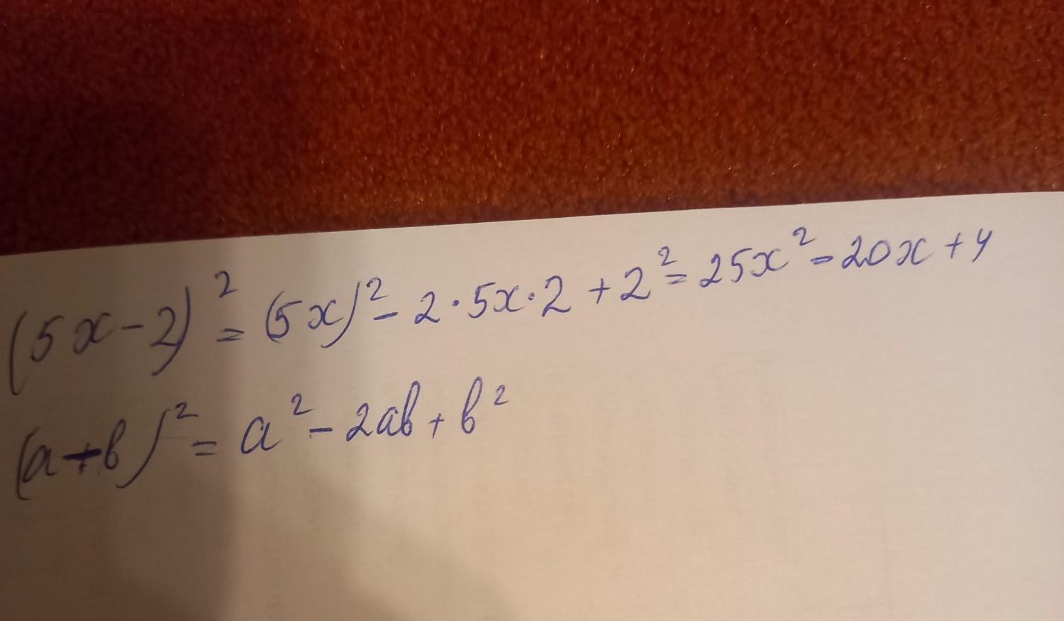 (5х-2)²=25х²-2*5х*2+4=25х²-20х+4