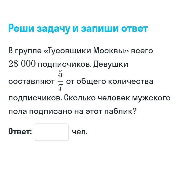 Так как 5/7 часть количества подписчиков девушек, то количество мужчин 2/7.