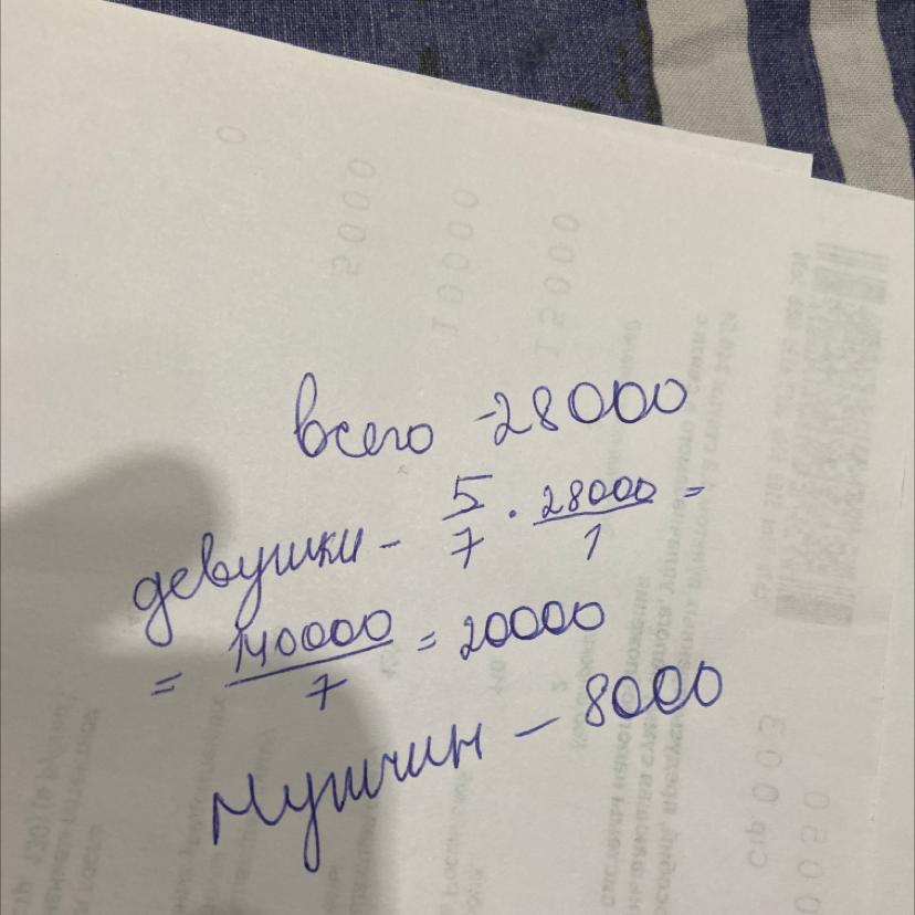 Найдём 1/7, для того чтобы её найти нужно 28.000/7, то есть 1/7= 4.000, из этого следует, что количество мужчин равно: 4.000 * 2, то есть 8.000