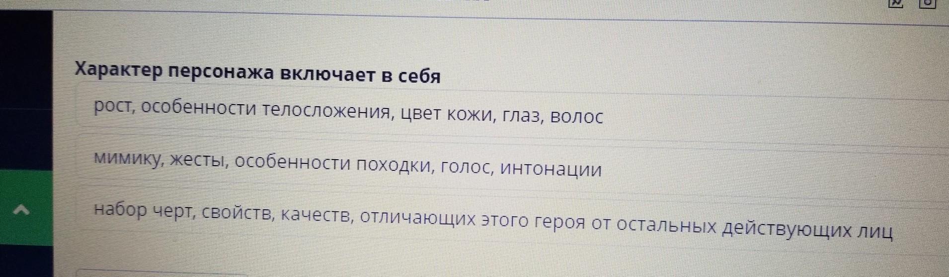 Характер персонажа включает в себя рост, особенности телосложения, цвет кожи, глаз, волос мимику, жесты, особенности походки, голос, интонации набор черт, свойств, качеств, отличающих этого героя от остальных действующих лиц Назал г тант