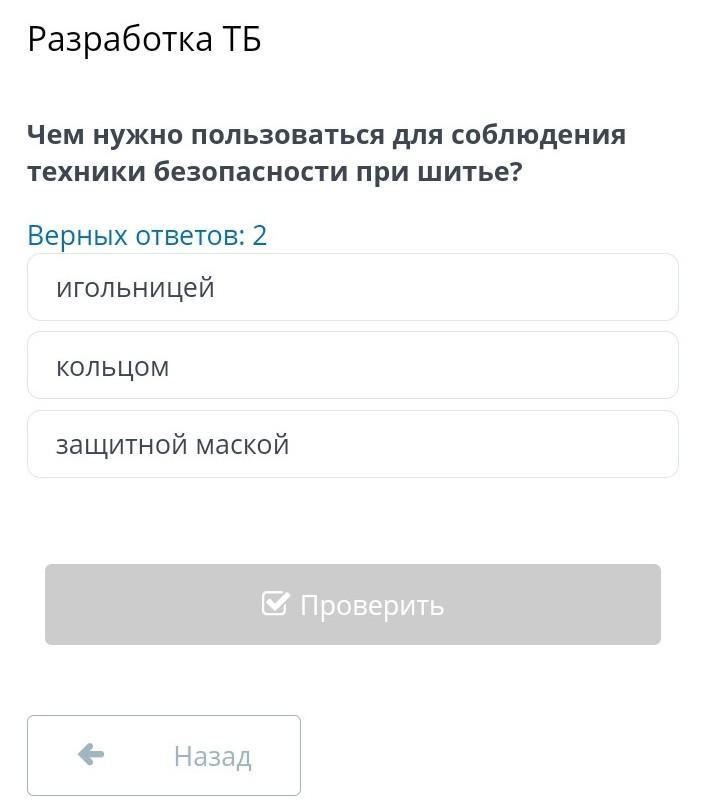 Чем нужно пользоваться для соблюдения техники безопасности при шитье? Верных ответов: 2