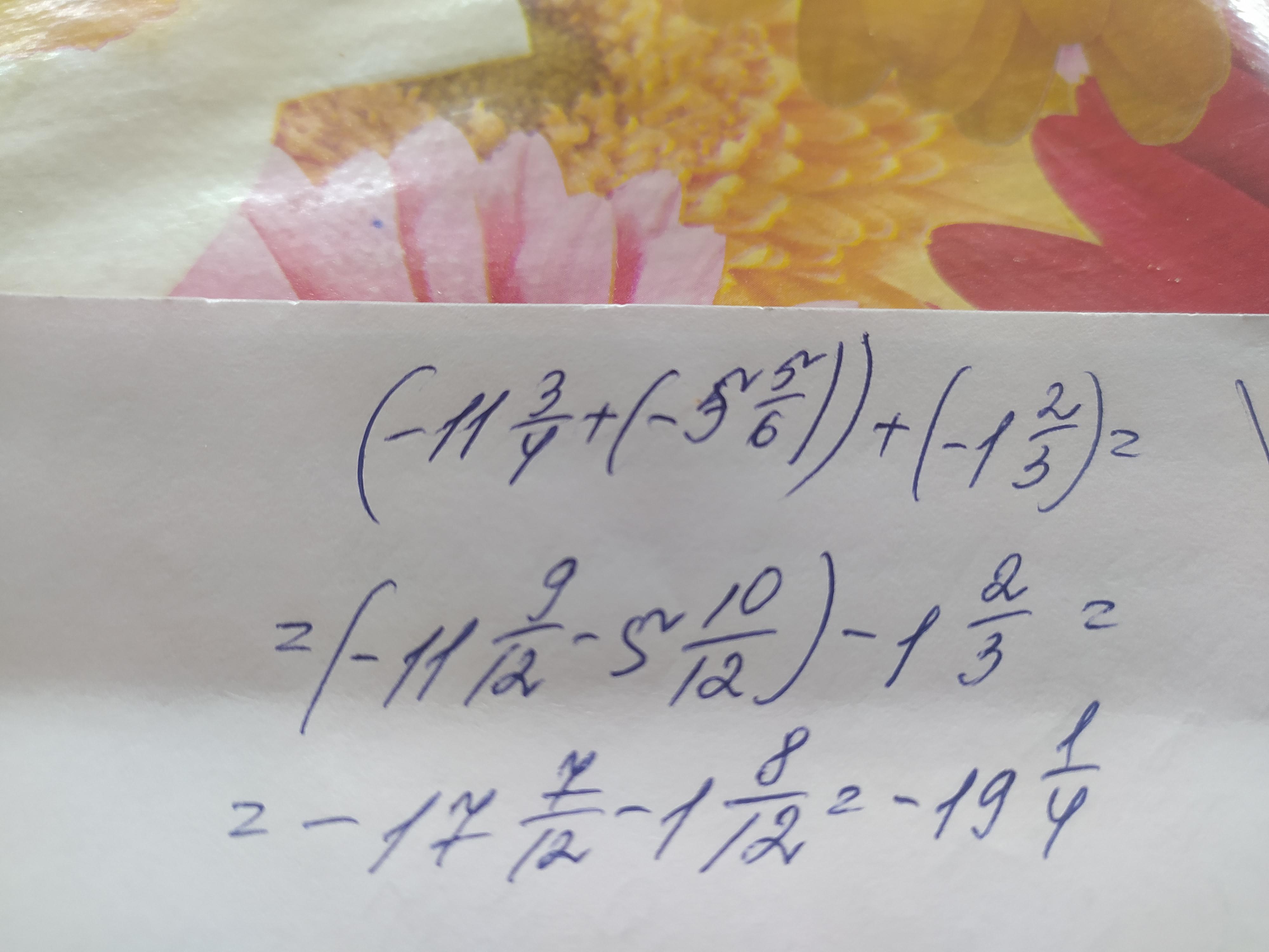 К сумме - 11 3/4 и - 5 5/6 прибавить число, противоположное числу 1 2/3
