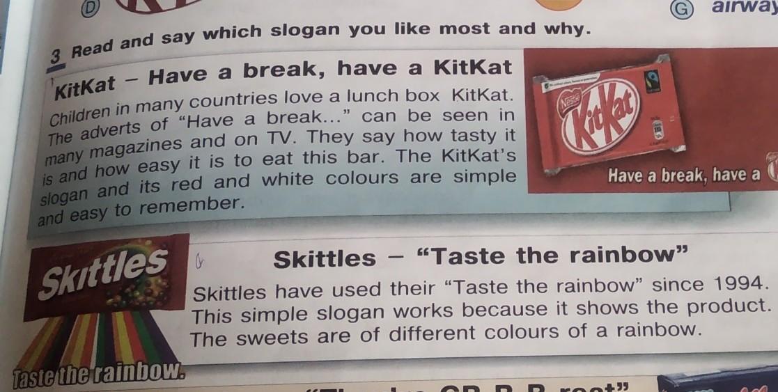 А тут тебе нужно выбрать один логотип сладостей и надо написать почему этот продукт тебе нравится