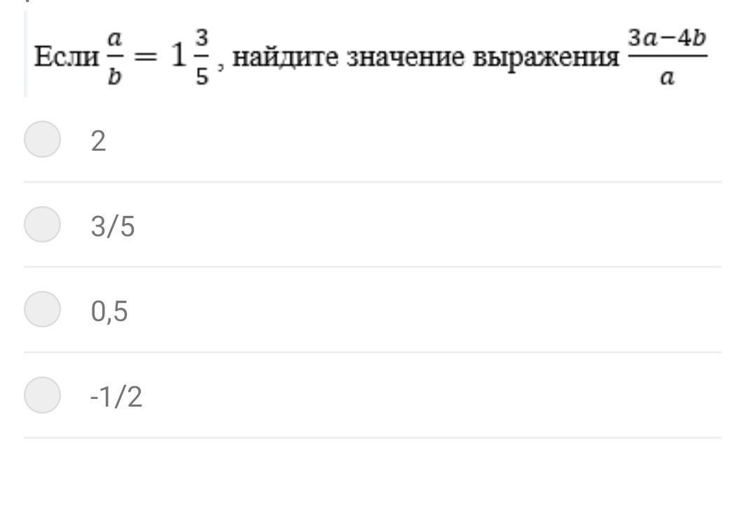a/b = 1 3/5; (3a - 4b)/a = ?