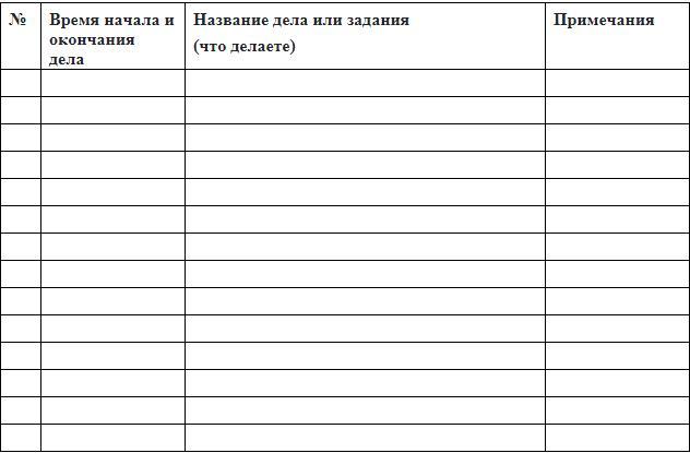 Написать в хронологической последовательности, распределив время на выполнение дел и заданий. Заполняем в таблицу.