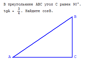 tg A = 3/4 - уже ясно, что это египетский треугольник