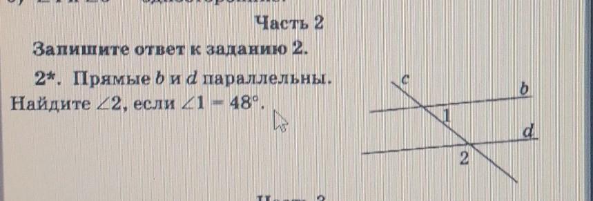 Ответ:180-48=132(односторонние) когоуугол 2 =132 как вертикальные