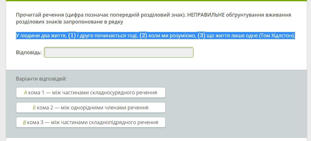 Речення: У людини два життя, (1) і друге починається тоді, (2) коли ми розуміємо, (3) що життя лише одне (Том Хідлстон).