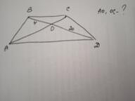 ΔВОС подібний ΔАОD за властивістю трикутників, прилеглих до основ трапеції. Отже, ВО/ОD=ОС/АО.