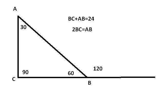 BC+AB=24; BC+2BC=24; 3BC=24;
