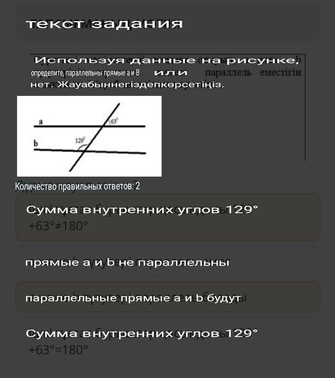 2) Сумма внутренних углов 129+63=/=180; 129+63=192