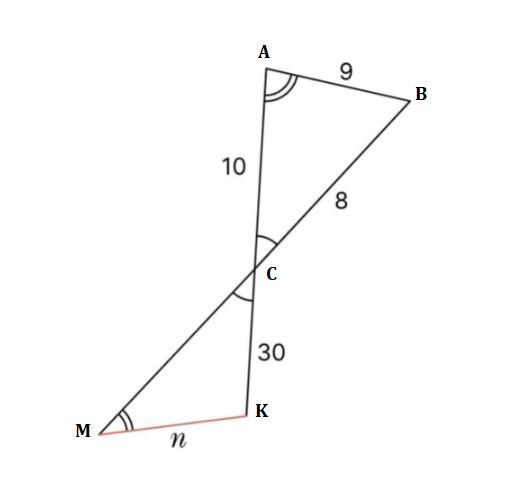 1) △ABC подобен △МKC так как: ∠A=∠M, ∠АСB =∠МCK - по условию. Следовательно треугольники подобны по двум углам (1 признак подобия).