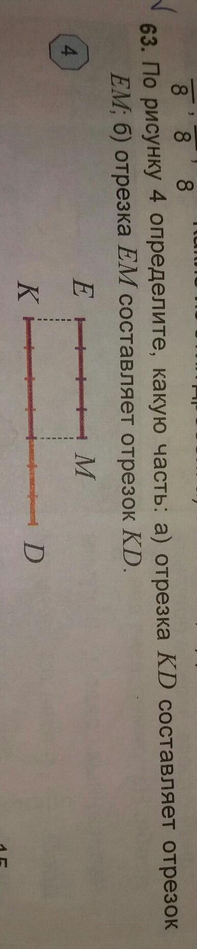 отрезок ем занимает 4 деления а кд8 а значит ем занимает 1/4 (это дробь) кд