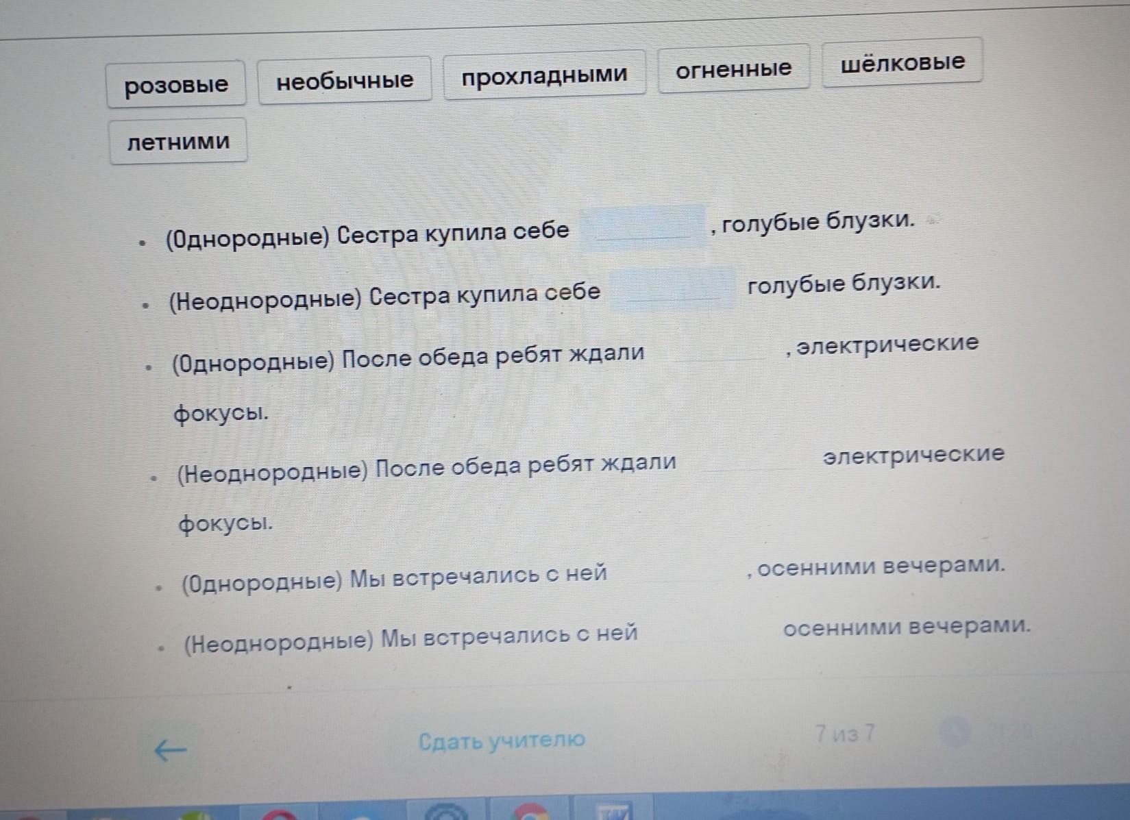 Вставьте определения так, чтобы они были однородными или неоднородными.