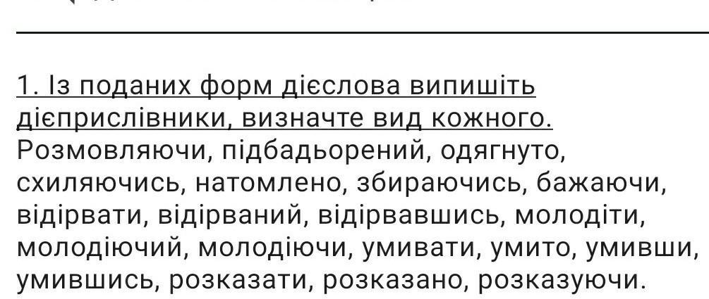 Розмовляючи, одягнуто, натомлено, збираючись, бажаючи, молодiти, розказано, розказуючи.