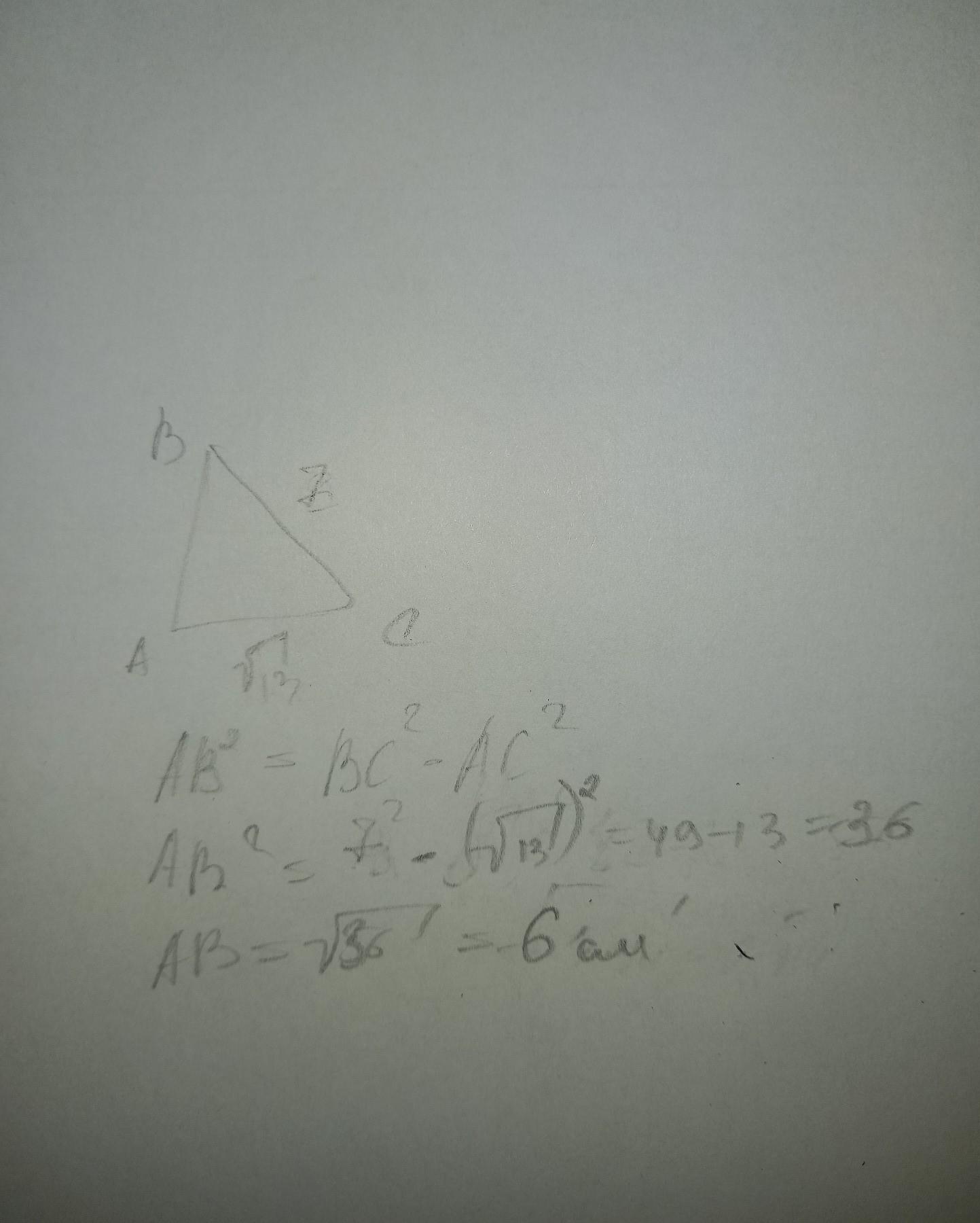 За Піфагором квадрат катета дорівнює квадрат гіпотенузи відняти квадрат відомого катета