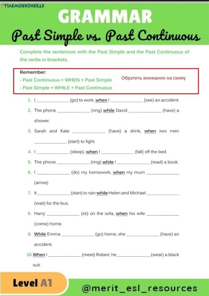 1) was going , saw 2) rang, had having 3) we're having, started 4) was sleeping, fallen 5) rang, was reading 6) was doing, arrived 7) started, we're waiting 8) was sitting, came 9) was going, had 10) met, was wearing