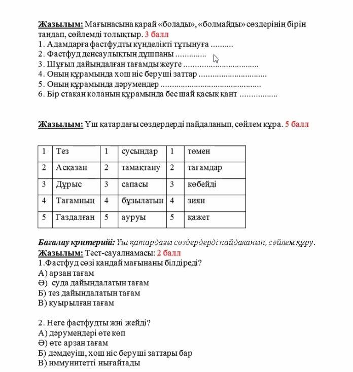1. Адамдарға фастфудты күнделікті тұтынуға болмайды.
